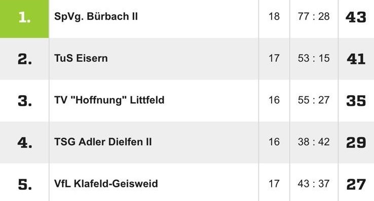 Bürbach 2 plötzlich Tabellenführer!